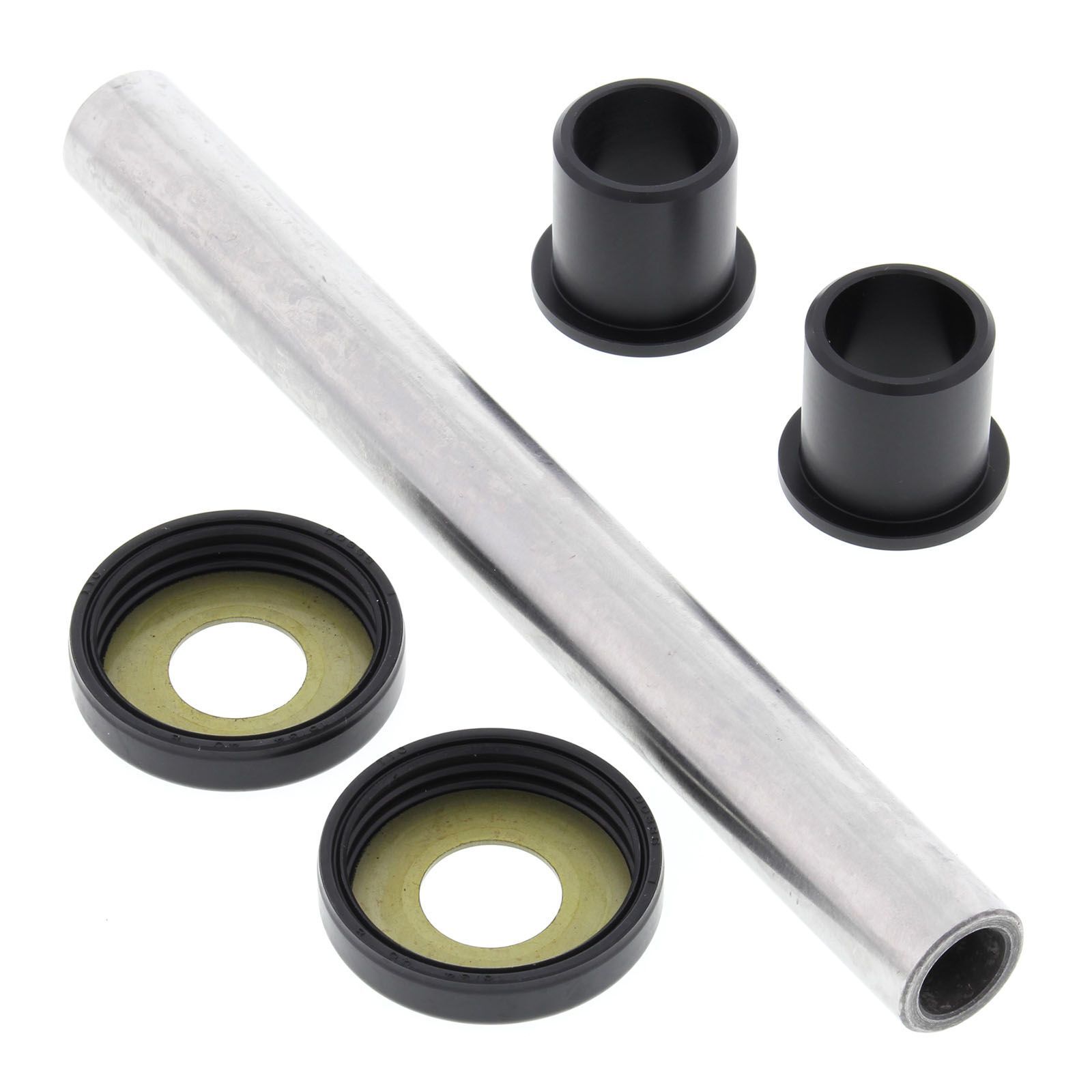 A Quality Swing Arm Repair Kit from All Balls Racing. Bushings are case hardened and plated to prevent wear and corrosion. POM composite washer bearings replace thrust needle washers for susperior resistance to water and dirt and increase service life. Shafts are made from 52100 Bearing steel, through hardened and precision ground. Needle Bearings are made from 52100 bearing steel and ARC61-65 heat treated ST13 steel shell.