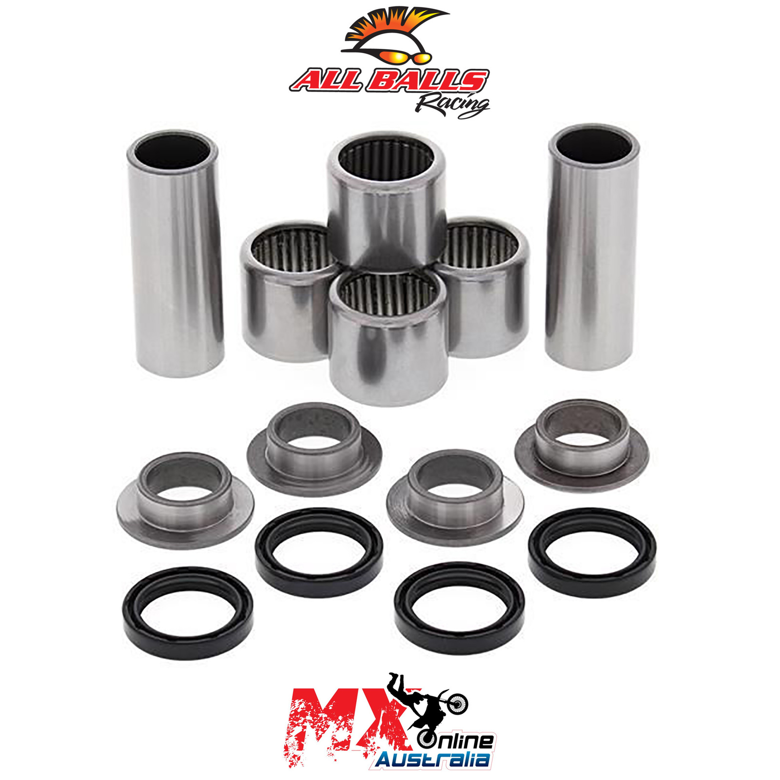 A Quality Swing Arm Repair Kit from All Balls Racing. Bushings are case hardened and plated to prevent wear and corrosion. POM composite washer bearings replace thrust needle washers for susperior resistance to water and dirt and increase service life. Shafts are made from 52100 Bearing steel, through hardened and precision ground. Needle Bearings are made from 52100 bearing steel and ARC61-65 heat treated ST13 steel shell.