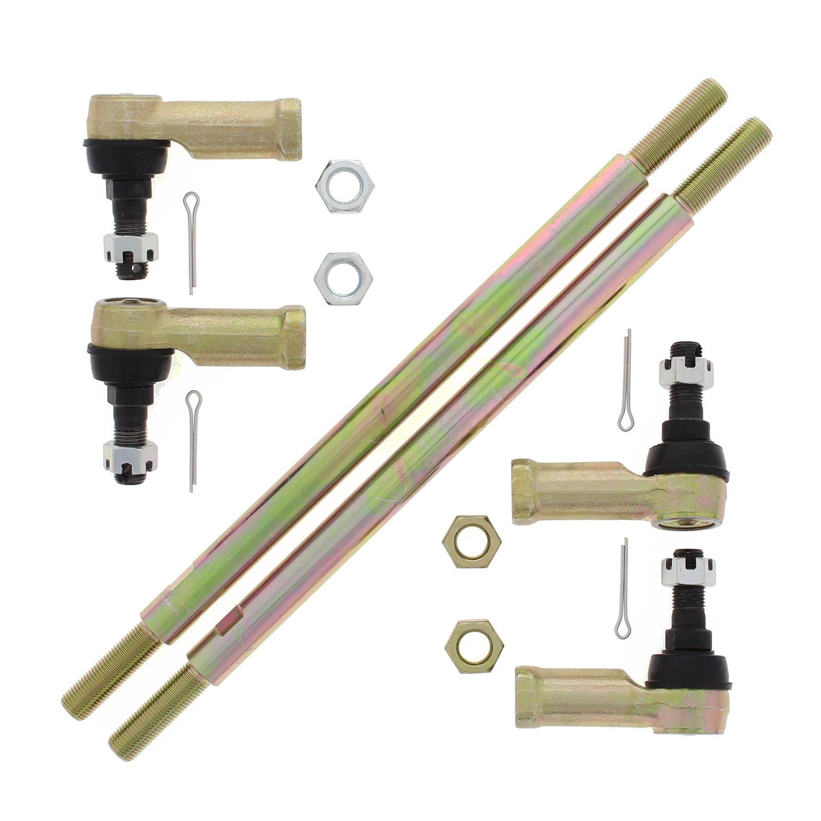 A Quality Tie Rod Upgrade Kit from All Balls racing. This kit will upgrade your OEM Tie Rod ends which are prone to failure to Heavy Duty. Much stronger than OEM. Each kit contains two tie rods, four tie rod ends along with cotter pins and jam nuts.