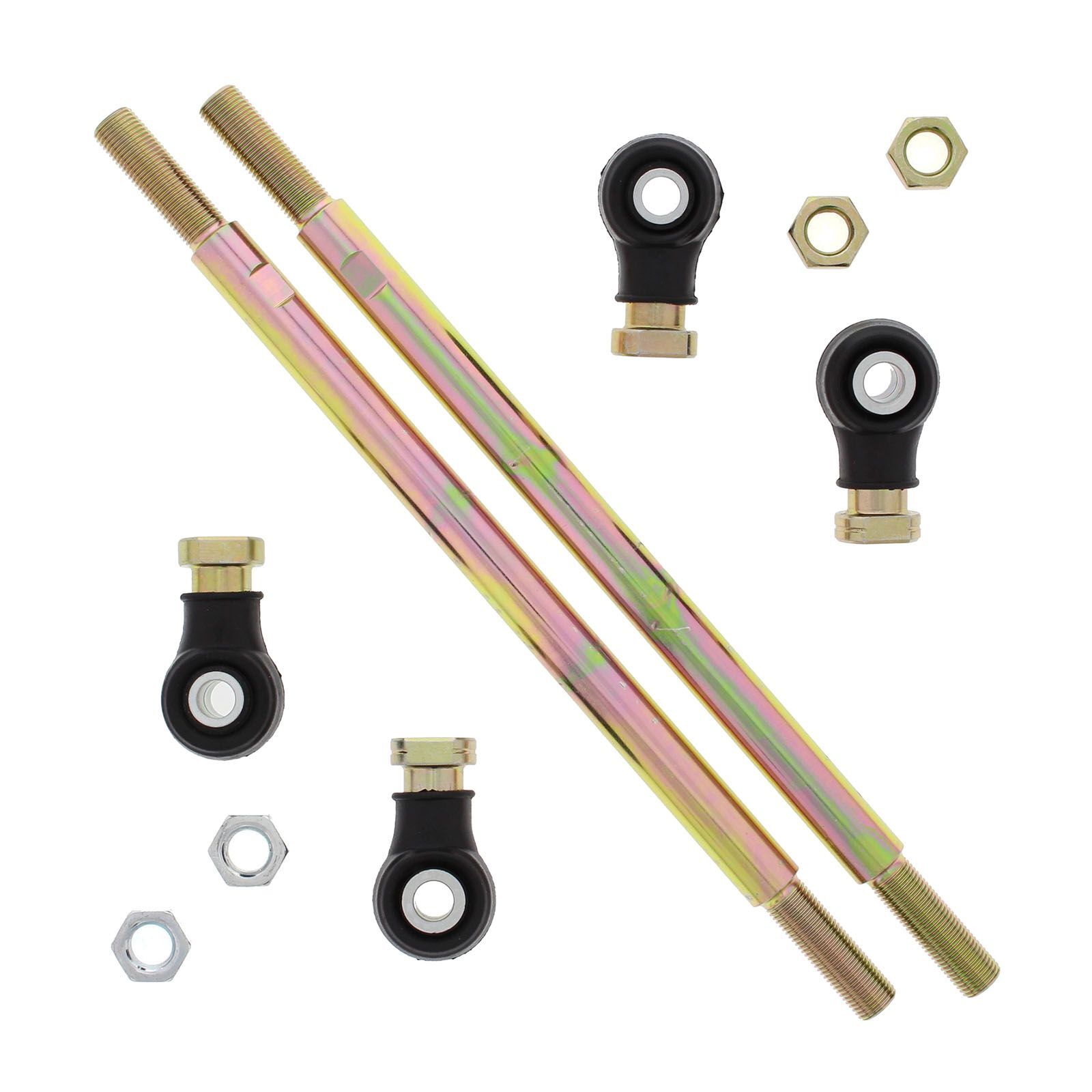 A Quality Tie Rod Upgrade Kit from All Balls racing. This kit will upgrade your OEM Tie Rod ends which are prone to failure to Heavy Duty. Much stronger than OEM. Each kit contains two tie rods, four tie rod ends along with cotter pins and jam nuts.