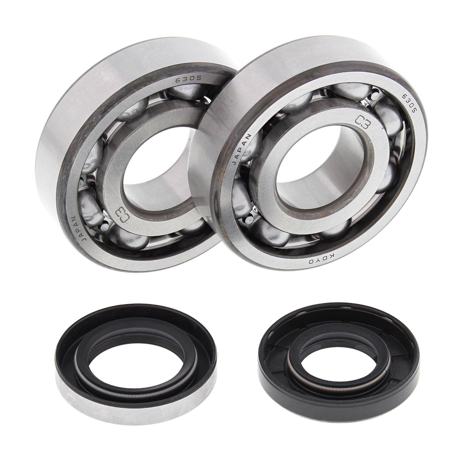 A quality Engine Main Bearing kit from All Balls. Manufactured in Japan to exacting specifications so quality and durability is assured. Contains bearings and seals as required per application. Rebuild your engine with these and enjoy trouble free riding for years to come.