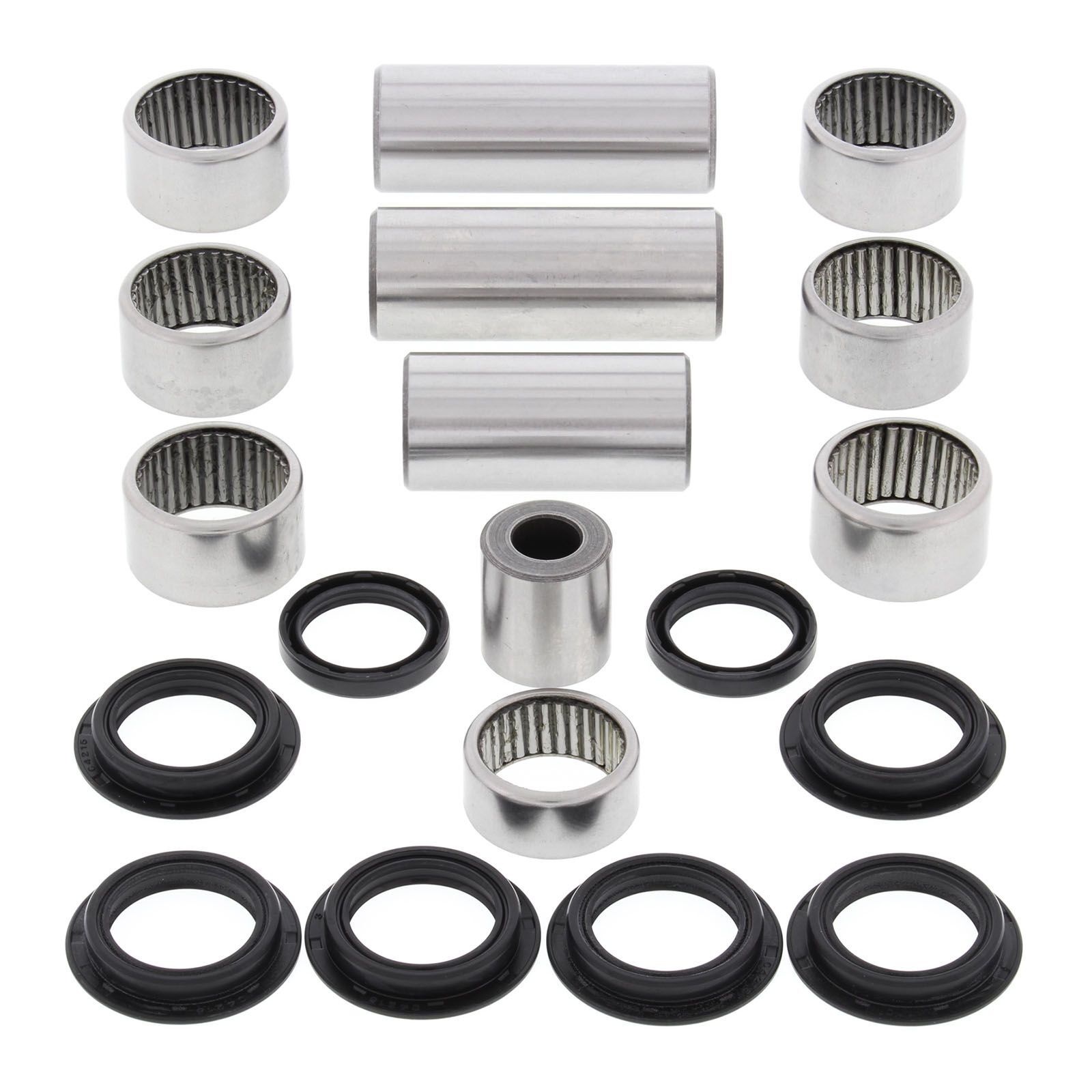 A Quality Suspension Linkage Kit from All Balls Racing. Kit includes lower shock bearing kit! Needle Bearings are made from 52100 bearing steel, ARC61-65 heat treated ST13 steel shell. Bushings are case hardened and plated to prevent wear and corrosion. Shafts are made from 52100 Bearing steel, through hardened and precision ground.