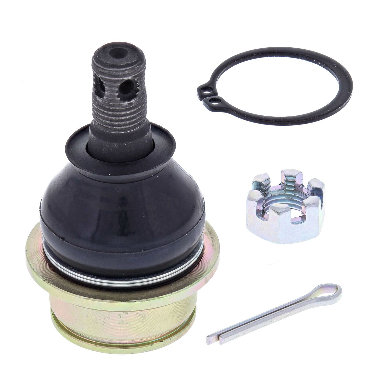 A Quality Ball Joint Kit from All Balls Racing. Bearing cup is made from POM-M90 to isolate steel rod from housing. Comes with snap ring and cotter pin. Saves you lots over OEM!