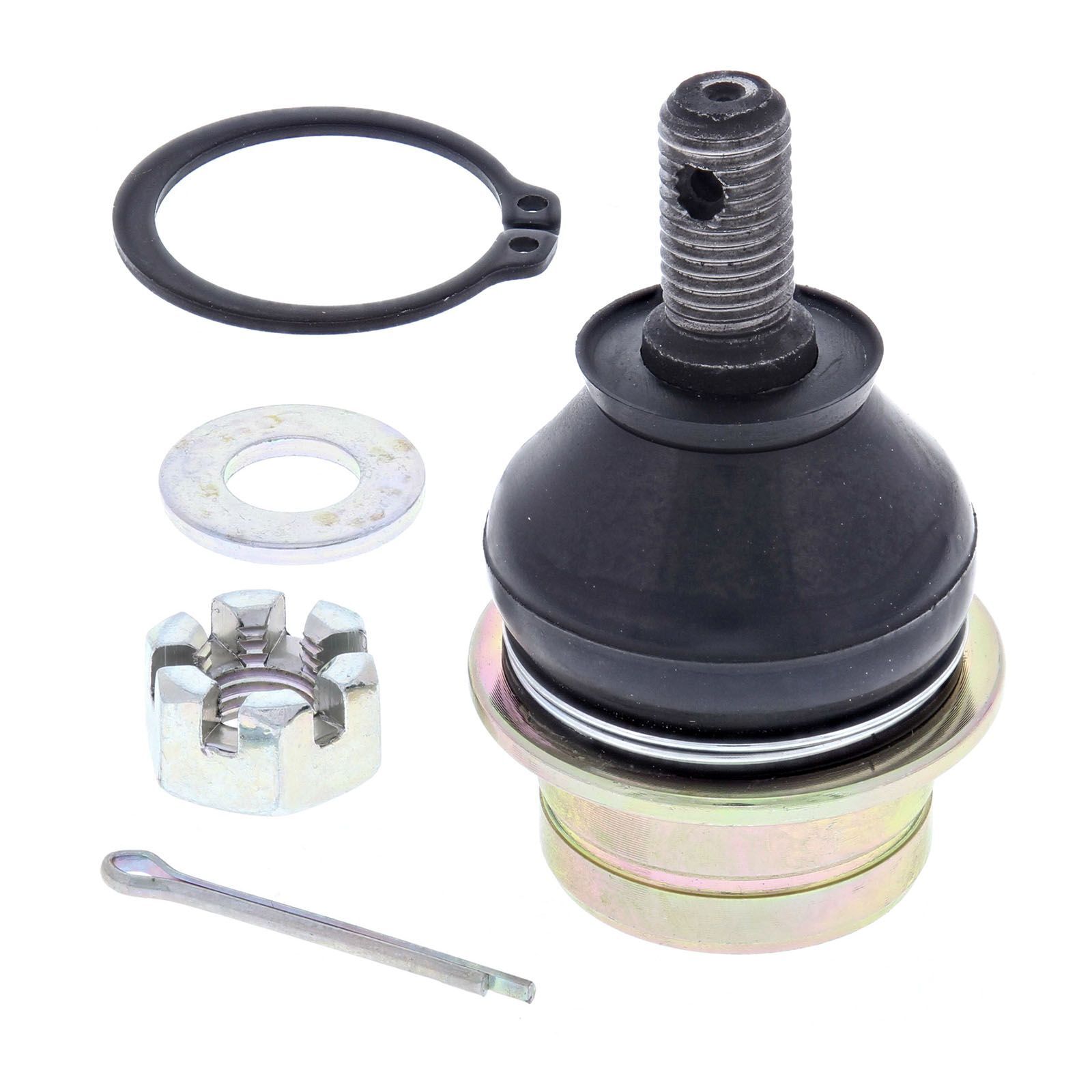 A Quality Ball Joint Kit from All Balls Racing. Bearing cup is made from POM-M90 to isolate steel rod from housing. Comes with snap ring and cotter pin. Saves you lots over OEM!