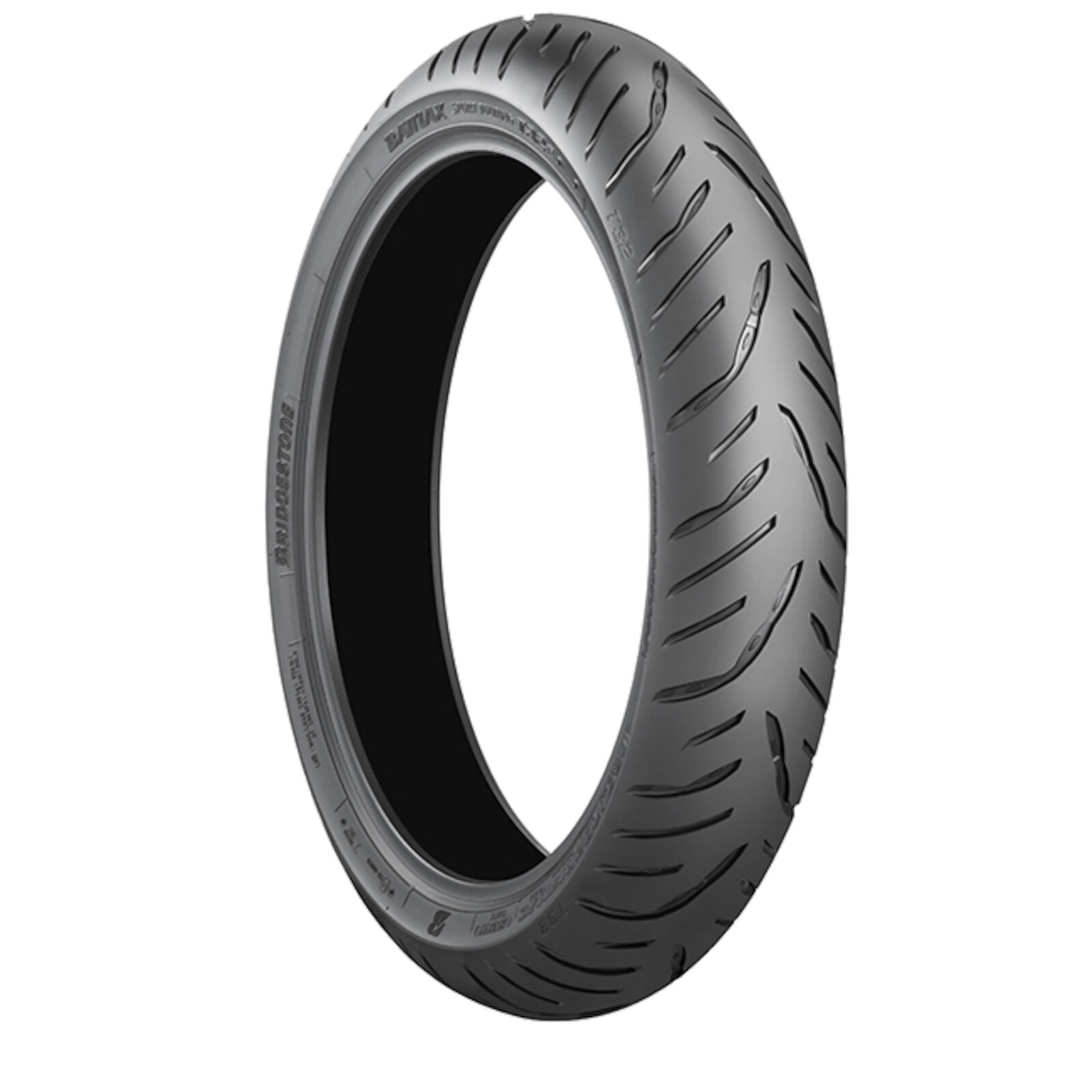 The Battlax Sport Touring T32 is Bridgestone's Sport Touring flagship model. The T32 brings together everything the category needs in terms of performance, confidence and contact feel in all weather conditions. implementation of the Pulse Groove pattern technology, but also secretly hidden inside its black shell thanks to the tremendous efforts done in terms of construction and compound combination. Regarding the Pulse Groove pattern design technology: Bridgestone's focus for this development was clearly directed towards wet handling and total wet performance improvement. Successfully so, as the Pulse Groove technology is a key contributing factor to the significant wet performance enhancement. Together with the impressive numbers regarding contact patch increase and contact patch adhesion upgrades – all without losing its highly appreciated linear and neutral handling behaviour – the T32 defines a new benchmark within the Sport Touring category. For the middleweight and heavy touring motorcycles out there, Bridgestone decided to develop a fully dedicated T32 GT tyre with dedicated technical features and pattern design, in line with the requirements for this very specific motorcycle category.