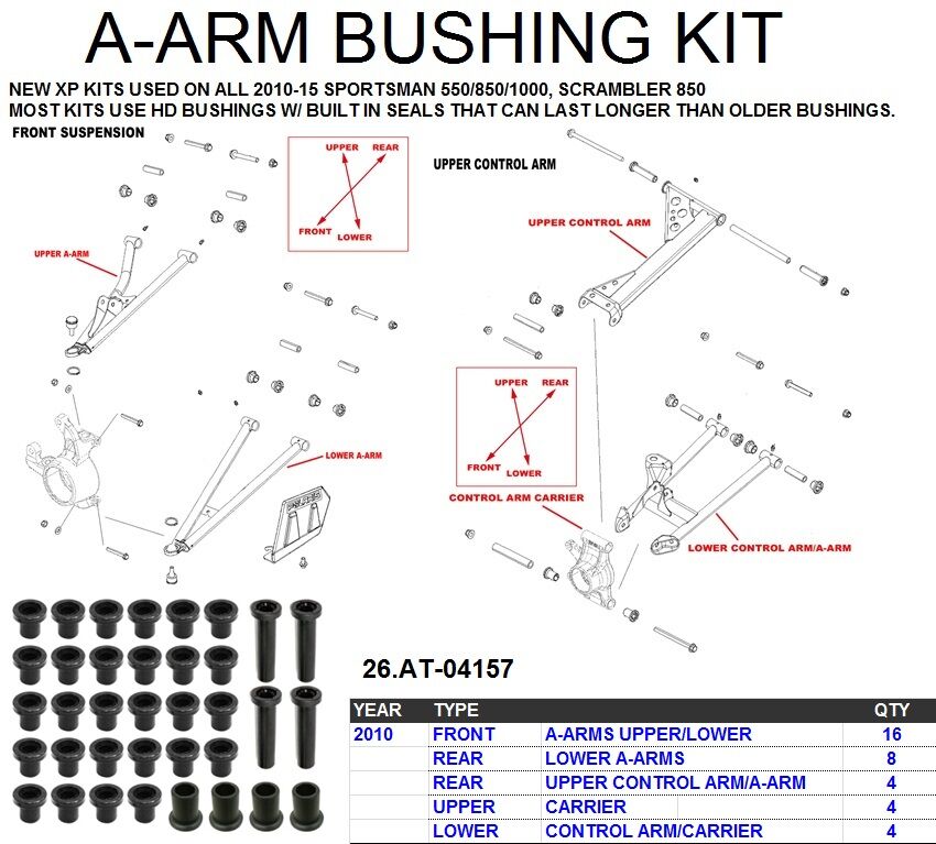 Rear Upper/Lower A-Arm Bearing Kit for Polaris SCRAMBLER 850 XP HO EPS 2014