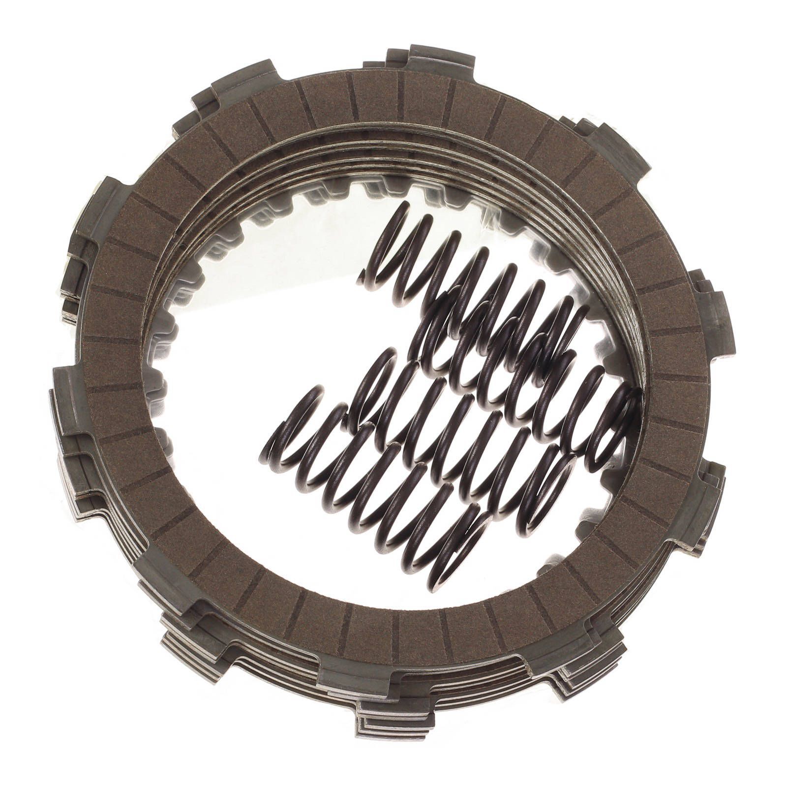 Whites Complete Clutch Kits contain a complete pack of friction steel plates and a set of clutch springs for your motorcycle or ATV. The Whites Complete Clutch Kit is the easiest and best replacement for your clutch. The kit has complete compatibility with your OEM clutch components. Quality drive and friction plates are made with precision to ensure tight tolerances in the clutch basket and inner hub. Quality cork-based friction plates offer a great feel and strong engagement.