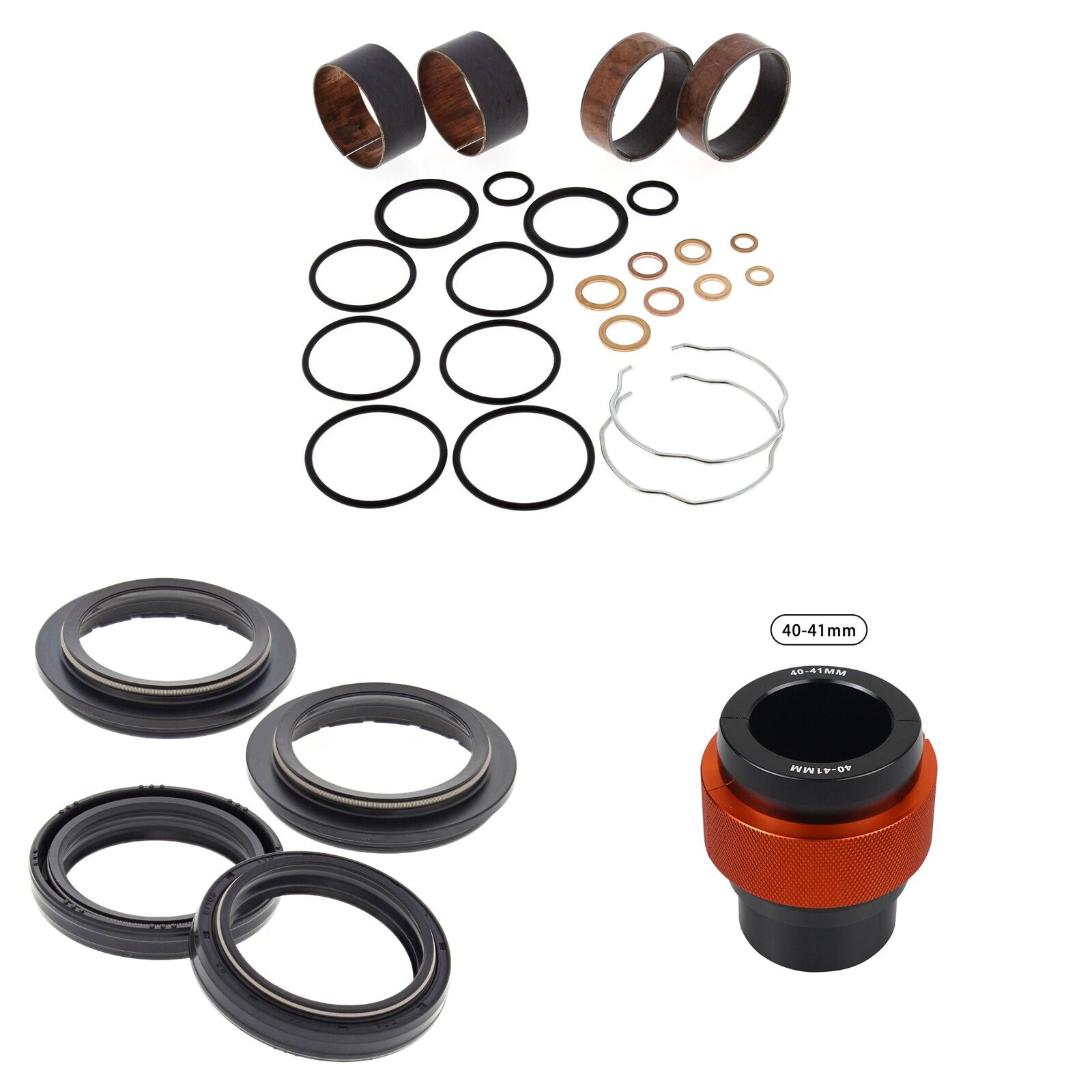 MXO has done all the hard work and created these Complete Fork Rebuild Kits, This Kit includes 1 x All Balls Fork Rebuild Kit, 1 x All Balls Fork Oil Seals pack, 1 x All Balls Fork Dust Seal pack and 1 x MXO fork seal driver to suit specified fork dimenstions. Please note the 56- specified kits with comes with a combined pack of All Balls Oil/Dush Seals.
