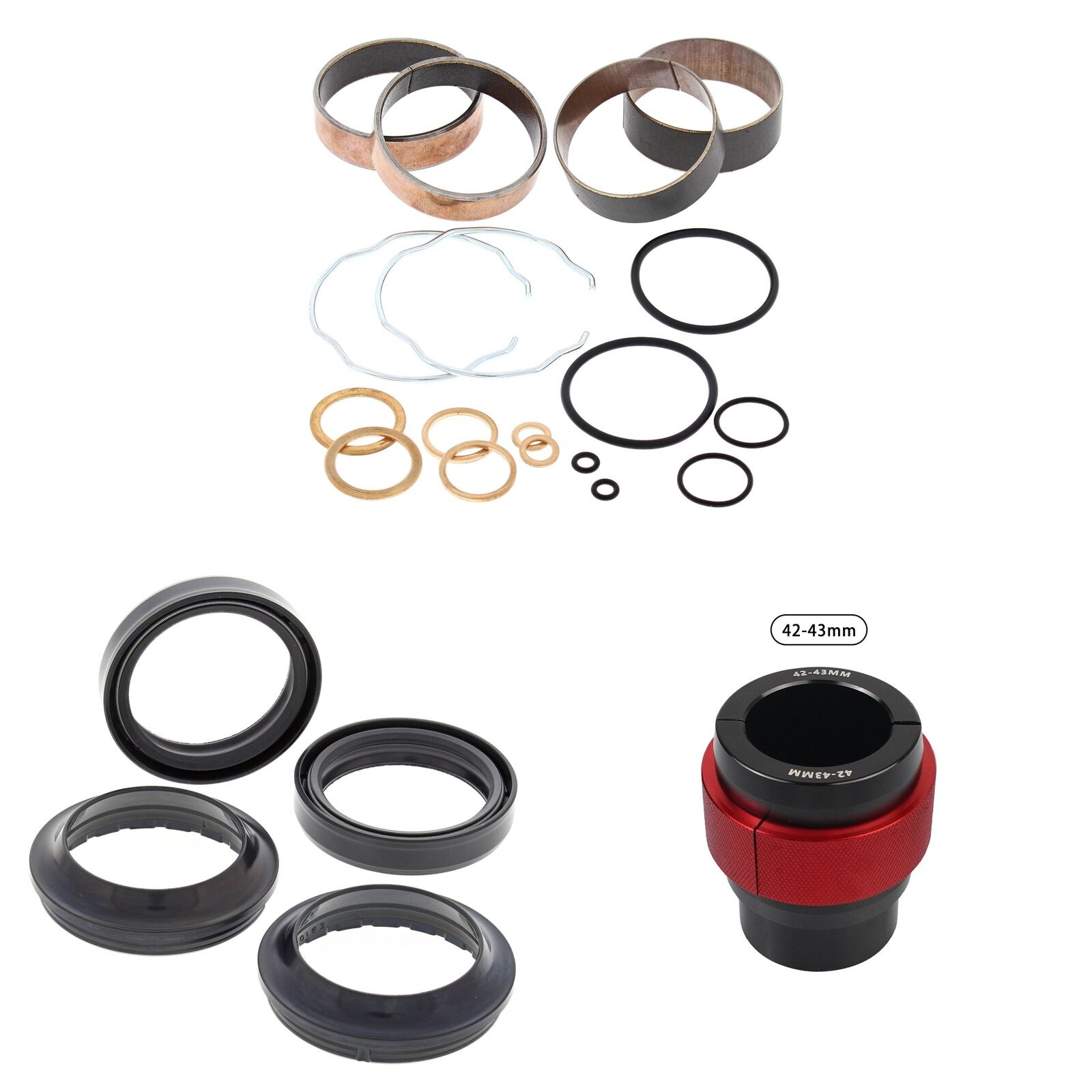 MXO has done all the hard work and created these Complete Fork Rebuild Kits, This Kit includes 1 x All Balls Fork Rebuild Kit, 1 x All Balls Fork Oil Seals pack, 1 x All Balls Fork Dust Seal pack and 1 x MXO fork seal driver to suit specified fork dimenstions. Please note the 56- specified kits with comes with a combined pack of All Balls Oil/Dush Seals.