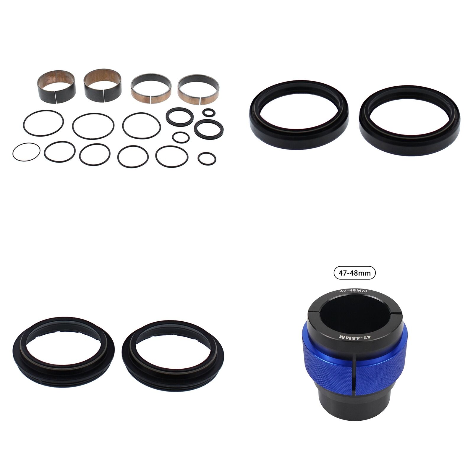 MXO has done all the hard work and created these Complete Fork Rebuild Kits, This Kit includes 1 x All Balls Fork Rebuild Kit, 1 x All Balls Fork Oil Seals pack, 1 x All Balls Fork Dust Seal pack and 1 x MXO fork seal driver to suit specified fork dimenstions. Please note the 56- specified kits with comes with a combined pack of All Balls Oil/Dush Seals.
