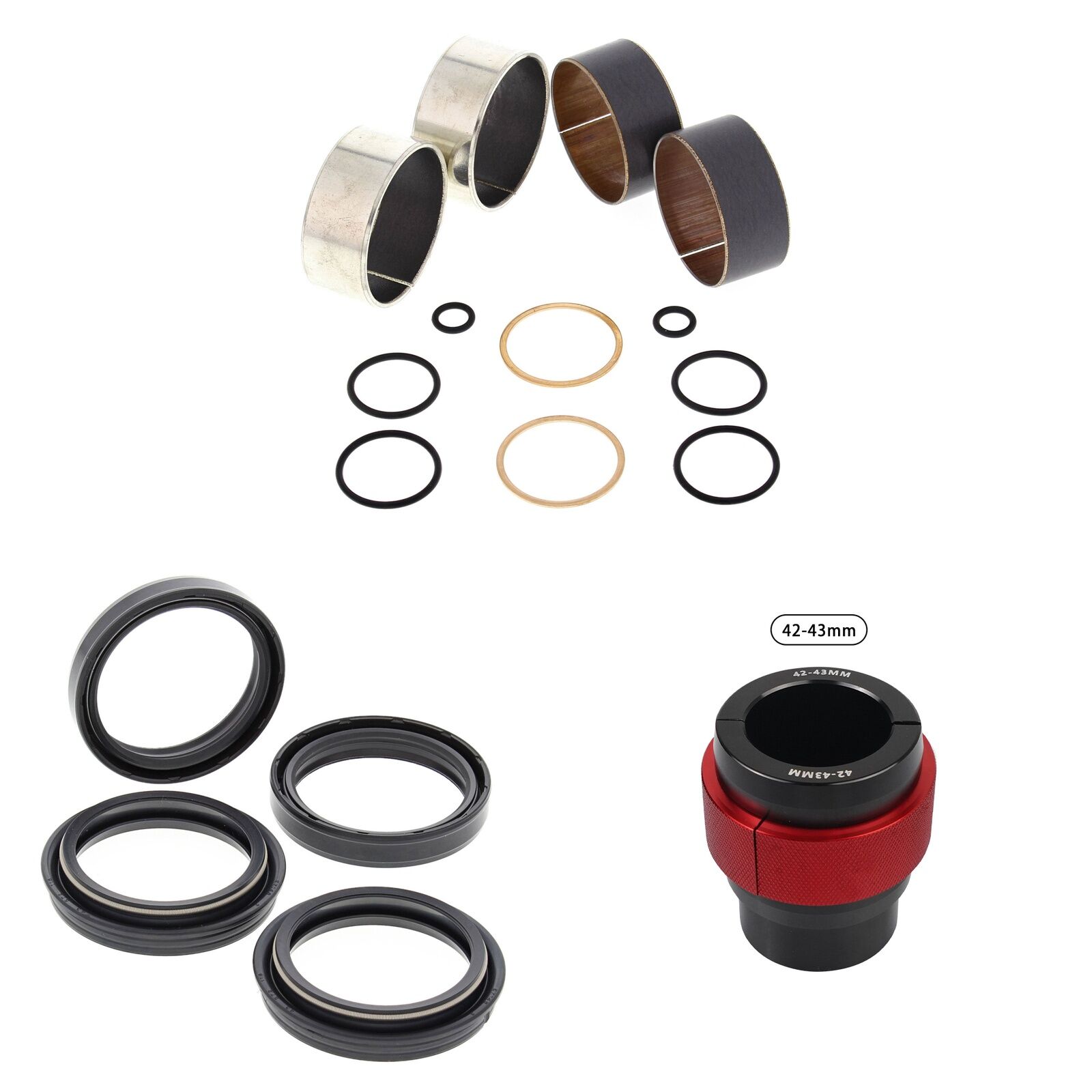 MXO has done all the hard work and created these Complete Fork Rebuild Kits so you dont need to endlessly search for all the parts to do the job, This Kit includes 1 x All Balls Fork Rebuild Kit, 1 x All Balls Fork Oil Seals pack, 1 x All Balls Fork Dust Seal pack and 1 x MXO fork seal driver to suit specified fork dimenstions. Please note the 56- specified kits comes with a combined pack of All Balls Oil/Dust Seals. Our MXO fork seal drivers are a complete Aluminium driver tested and recommended by our own team.