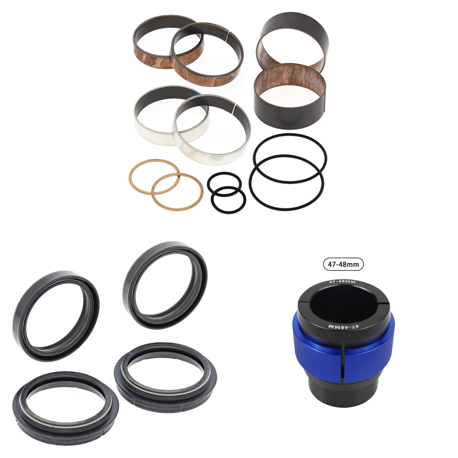 MXO has done all the hard work and created these Complete Fork Rebuild Kits so you dont need to endlessly search for all the parts to do the job, This Kit includes 1 x All Balls Fork Rebuild Kit, 1 x All Balls Fork Oil Seals pack, 1 x All Balls Fork Dust Seal pack and 1 x MXO fork seal driver to suit specified fork dimenstions. Please note the 56- specified kits comes with a combined pack of All Balls Oil/Dust Seals. Our MXO fork seal drivers are a complete Aluminium driver tested and recommended by our own team.