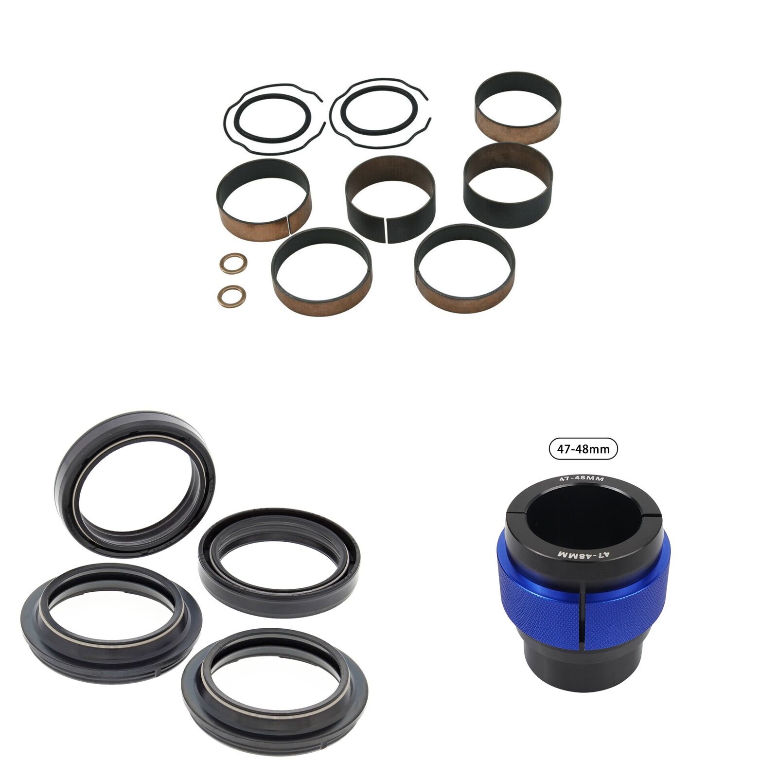 MXO has done all the hard work and created these Complete Fork Rebuild Kits so you dont need to endlessly search for all the parts to do the job, This Kit includes 1 x All Balls Fork Rebuild Kit, 1 x All Balls Fork Oil Seals pack, 1 x All Balls Fork Dust Seal pack and 1 x MXO fork seal driver to suit specified fork dimenstions. Please note the 56- specified kits comes with a combined pack of All Balls Oil/Dust Seals. Our MXO fork seal drivers are a complete Aluminium driver tested and recommended by our own team.