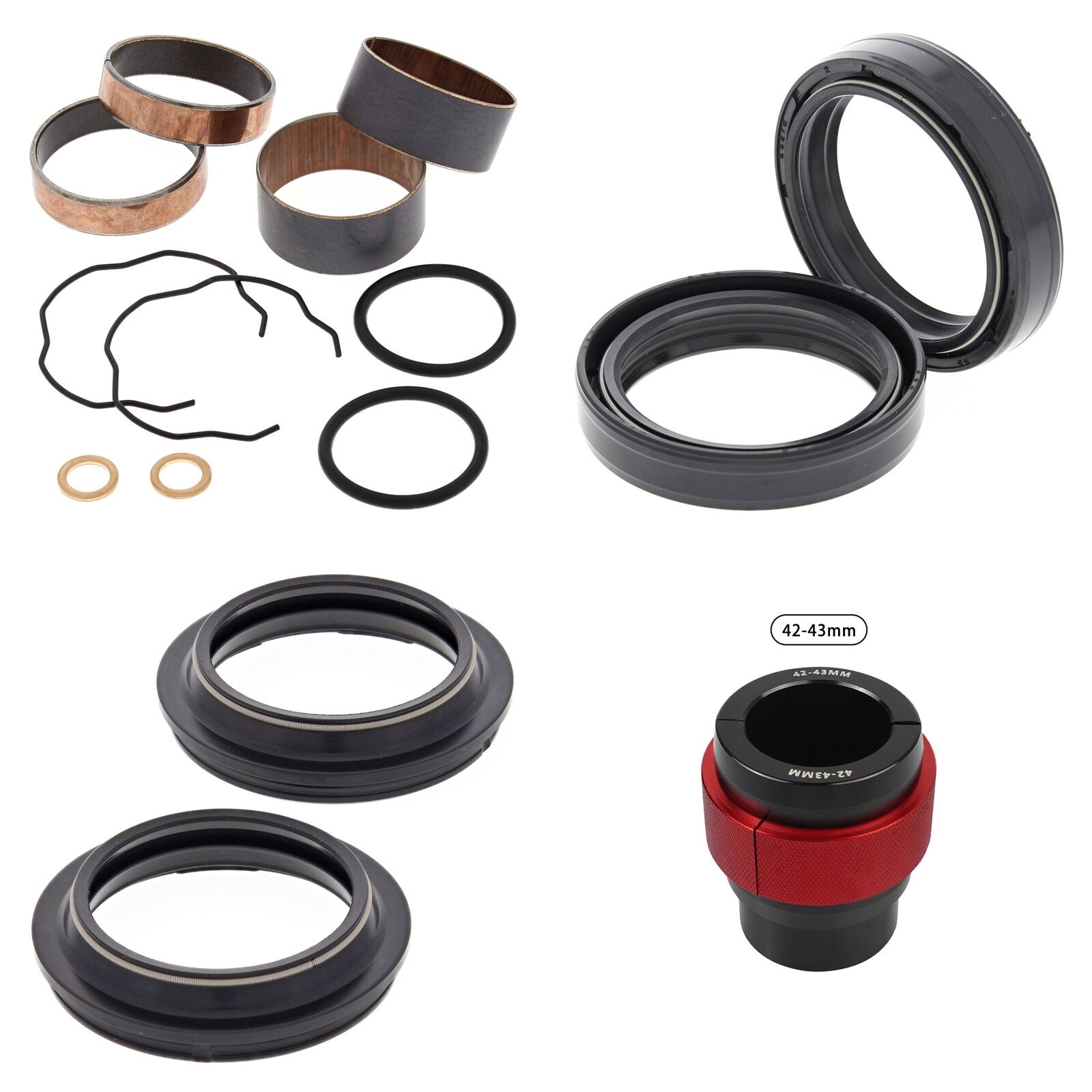 MXO has done all the hard work and created these Complete Fork Rebuild Kits so you dont need to endlessly search for all the parts to do the job, This Kit includes 1 x All Balls Fork Rebuild Kit, 1 x All Balls Fork Oil Seals pack, 1 x All Balls Fork Dust Seal pack and 1 x MXO fork seal driver to suit specified fork dimenstions. Please note the 56- specified kits comes with a combined pack of All Balls Oil/Dust Seals. Our MXO fork seal drivers are a complete Aluminium driver tested and recommended by our own team.