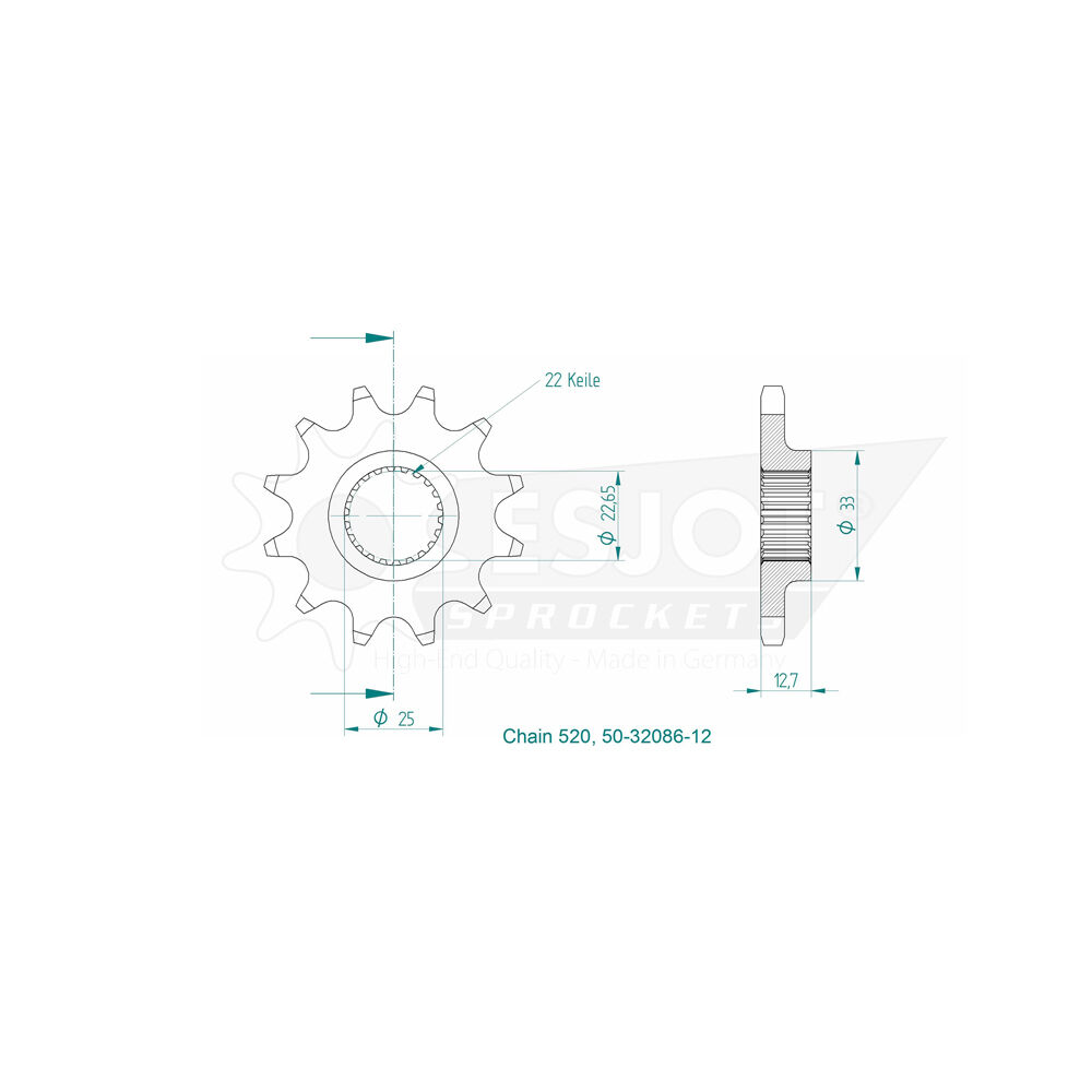 Esjot Front Sprocket 12T for Polaris 400 Xplorer 1999-2002