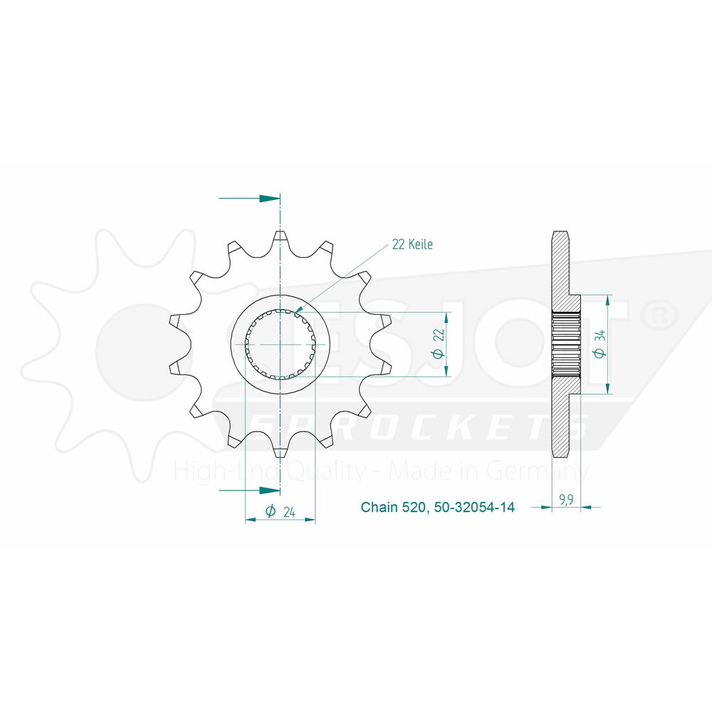 Esjot Front Sprocket 14T for Aprilia Pegaso 650 i.e 2001-2004