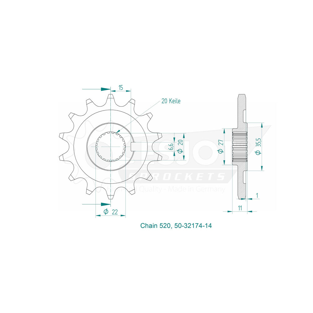 Esjot Front Sprocket 14T for Sherco 5.1 Enduro 2007-2010