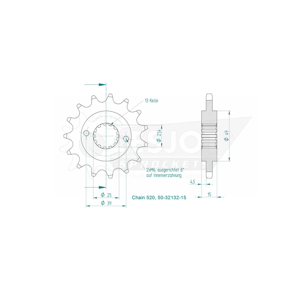 Esjot Front Sprocket 15T for Kymco Maxxer 300 2006-2008