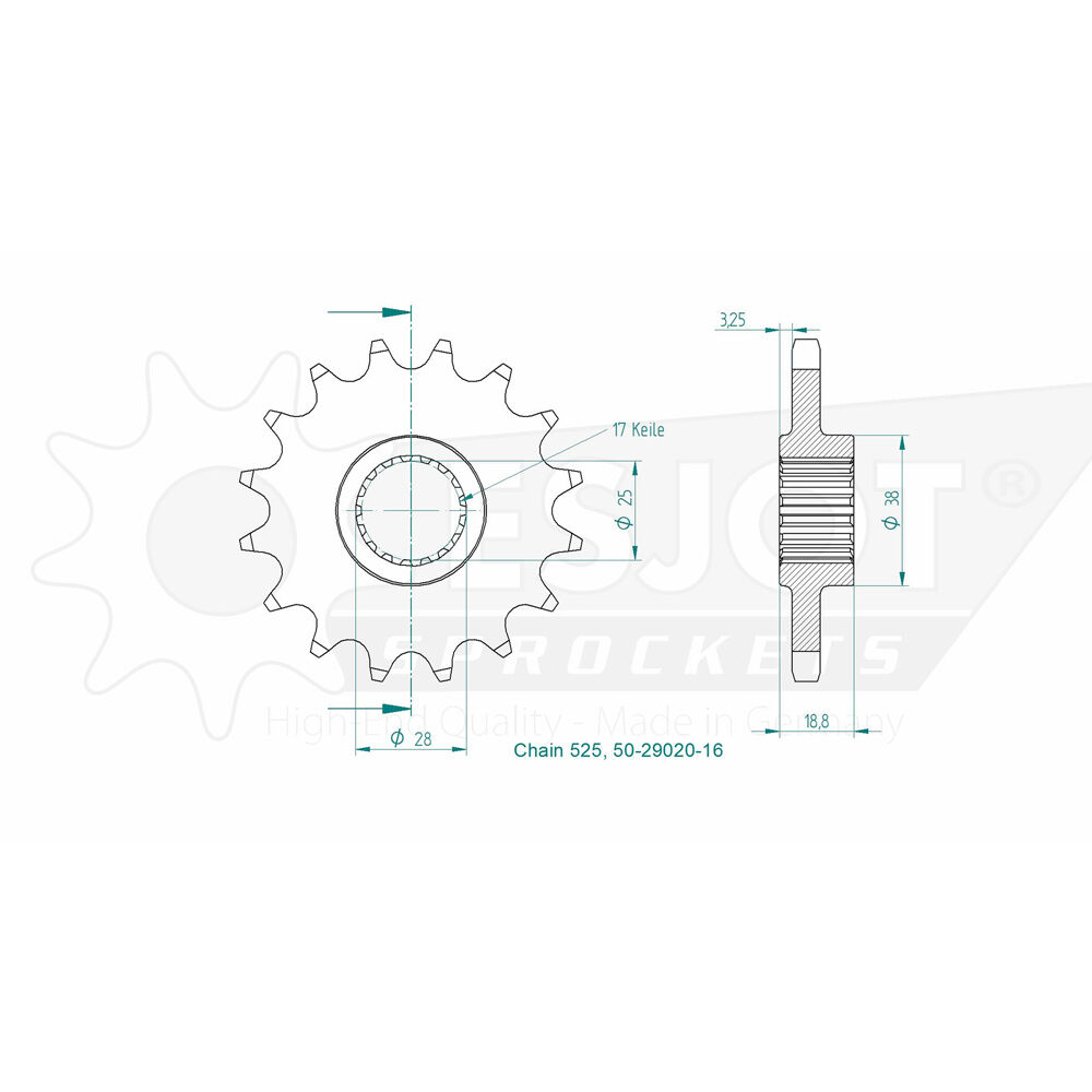 Esjot Front Sprocket 16T for Husqvarna Nuda 900 2012-2014
