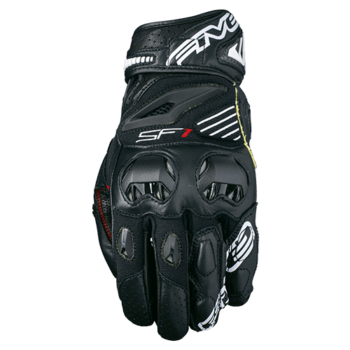 • Full-grain cowhide construction (topside) for durability/full-grain goatskin (palm) for suppleness \n• Ventilated TPU metacarpal-knuckle protective shells \n• Protective Carbon palm slider shell \n• Palm reinforcement in Digital Pittards® leather \n• Thenar muscle (palm) reinforcement with a Superfabric® patch \n• Internal Kevlar® lining \n• Outer stitching on the fingers \n• Carbon protective shell on the forearm \n• Stretch Kevlar® comfort panel (topside) \n• Closure system with Velcro tab and leather on-off pull tab \n• V-Five Signature element (the inside of the index and middle fingers on the left hand are in red)