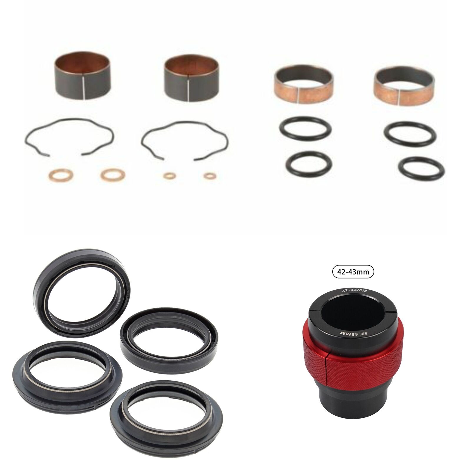 MXO has done all the hard work and created these Complete Fork Rebuild Kits so you dont need to endlessly search for all the parts to do the job, This Kit includes 1 x All Balls Fork Rebuild Kit, 1 x All Balls Fork Oil Seals pack, 1 x All Balls Fork Dust Seal pack and 1 x MXO fork seal driver to suit specified fork dimenstions. Please note the 56- specified kits comes with a combined pack of All Balls Oil/Dust Seals. Our MXO fork seal drivers are a complete Aluminium driver tested and recommended by our own team.