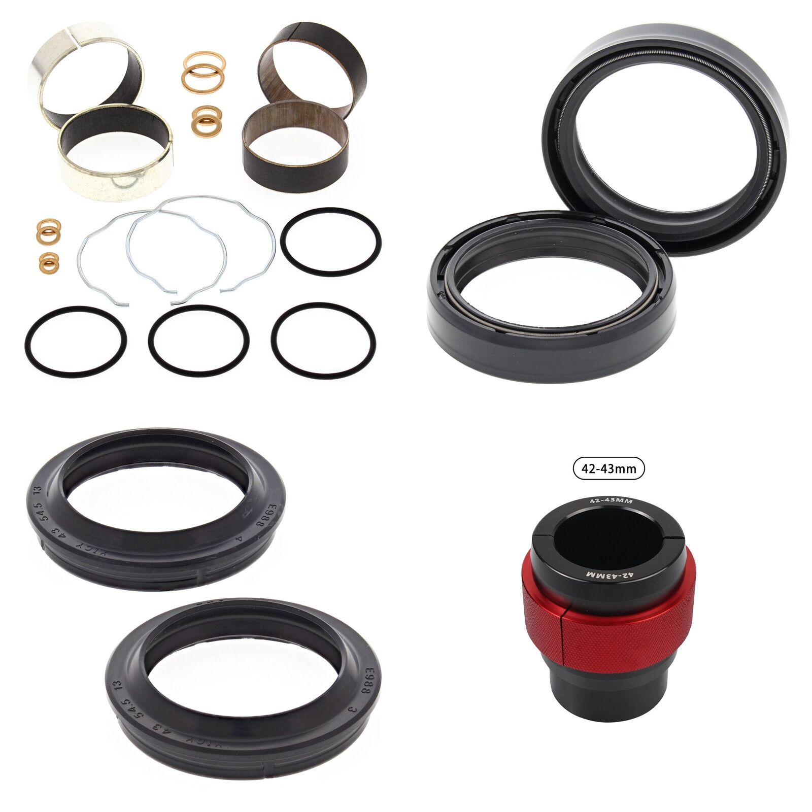 MXO has done all the hard work and created these Complete Fork Rebuild Kits so you dont need to endlessly search for all the parts to do the job, This Kit includes 1 x All Balls Fork Rebuild Kit, 1 x All Balls Fork Oil Seals pack, 1 x All Balls Fork Dust Seal pack and 1 x MXO fork seal driver to suit specified fork dimenstions. Please note the 56- specified kits comes with a combined pack of All Balls Oil/Dust Seals. Our MXO fork seal drivers are a complete Aluminium driver tested and recommended by our own team.