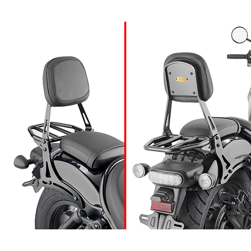 Backrest with detachable small luggage carrier, black, GIVI BACKREST WITH DETACHABLE RACK - HONDA CMX1100 REBEL 21-