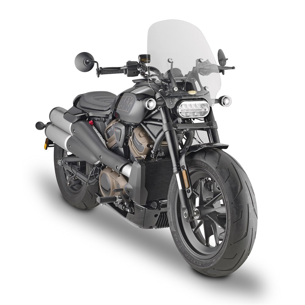 Specific screen, transparent 44 x 45 cm (H x W)to be combined with the specific A8401A fitting kit, GIVI SCREEN ONLY HARLEY SPORTSTER S 1250 21- (NEEDS A8401A)