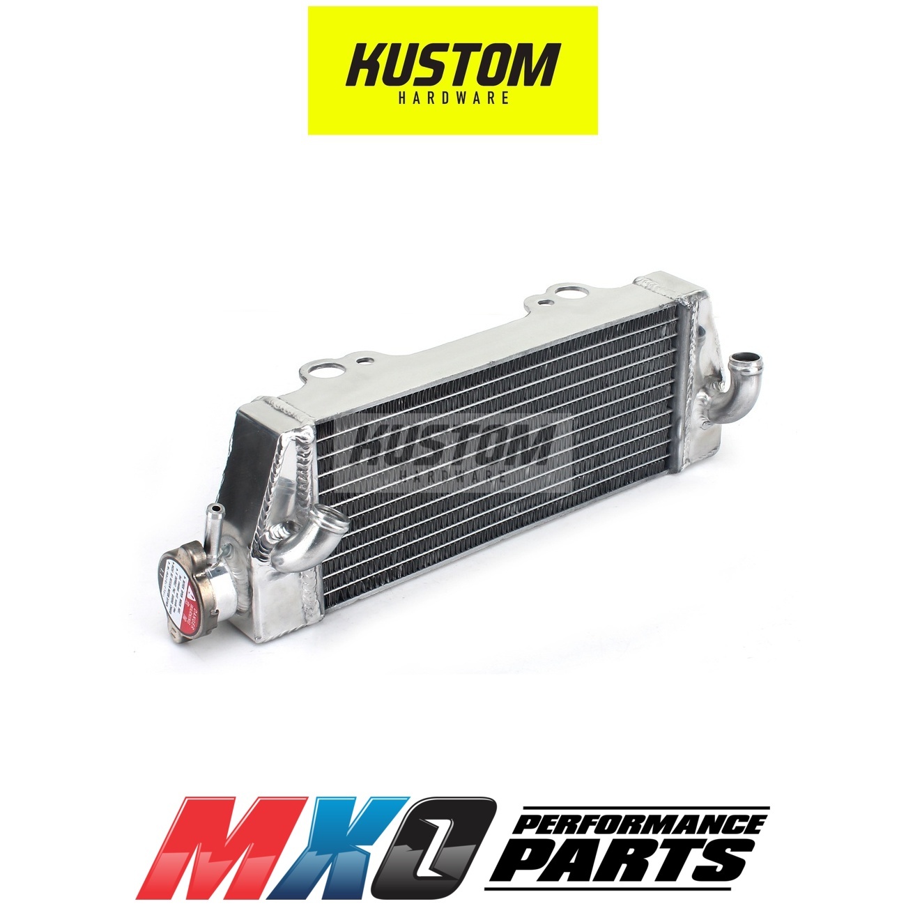 Kustom Hardware Radiators are specially designed and manufactured to withstand and exceed the demands of of off-road riding. Highly efficient brazed aluminium cores allow for maximum heat dissipation, which provides ultimate protection under extreme riding condition. Kustom Hardware radiators feature double OEM strength and larger fluid capacity.