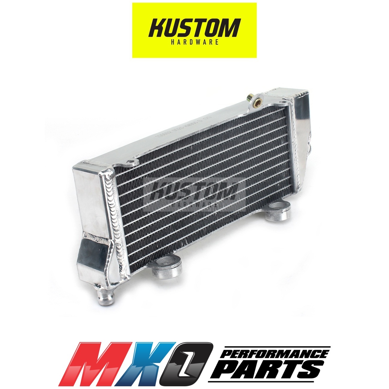 Kustom Hardware Radiators are specially designed and manufactured to withstand and exceed the demands of of off-road riding. Highly efficient brazed aluminium cores allow for maximum heat dissipation, which provides ultimate protection under extreme riding condition. Kustom Hardware radiators feature double OEM strength and larger fluid capacity.