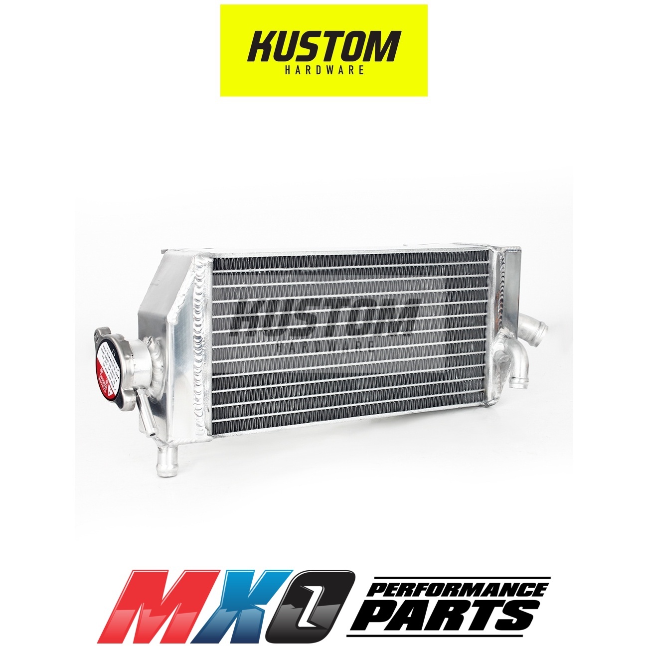 Kustom Hardware Radiators are specially designed and manufactured to withstand and exceed the demands of of off-road riding. Highly efficient brazed aluminium cores allow for maximum heat dissipation, which provides ultimate protection under extreme riding condition. Kustom Hardware radiators feature double OEM strength and larger fluid capacity.