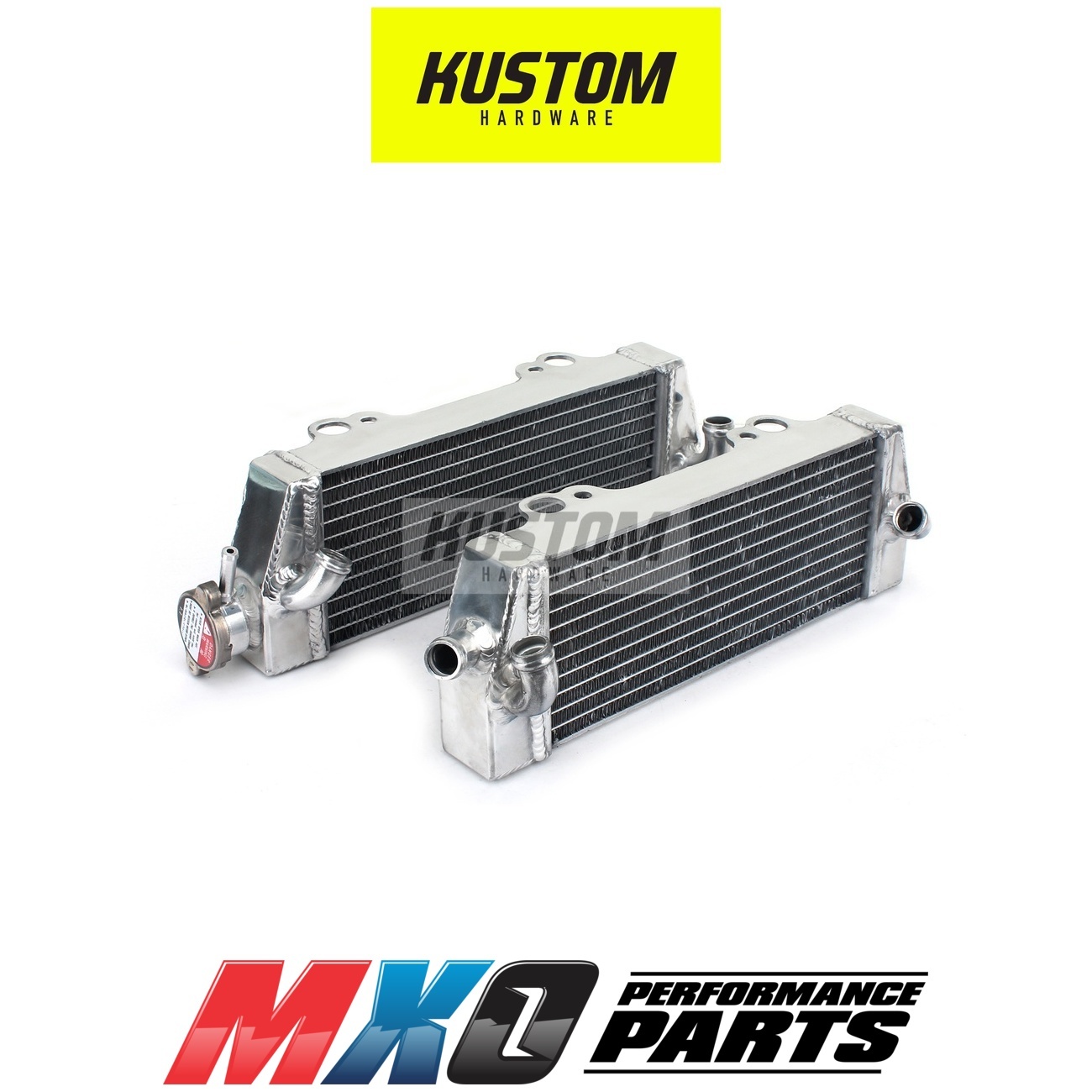 Kustom Hardware Radiators are specially designed and manufactured to withstand and exceed the demands of of off-road riding. Highly efficient brazed aluminium cores allow for maximum heat dissipation, which provides ultimate protection under extreme riding condition. Kustom Hardware radiators feature double OEM strength and larger fluid capacity.