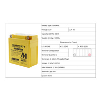 Specifically designed for motorcycles Motobatt batteries offer much higher cranking power and higher amp hour ratings. Their batteries can withstand constant starting without draining the battery or causing long-term cell damage. Their unique terminal design offers far greater versatility allowing them to fit a wider range of applications which enables stockists to carry a narrower range of batteries for a large market which makes it easier for retail customers to find a battery to fit their vehicle in stock.