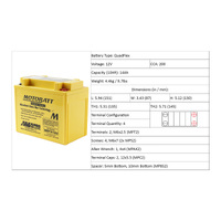 Motobatt batteries are manufactured from Absorbed Glass Mat (AGM) this design has revolutionised the motorcycle ATV lawnmower and small engine industry. QuadFlex provides a unique four-terminal design with two positives two negatives along with height spacers that permit an almost universal fit. All Motobatt AGM Batteries are maintenance-free non-hazardous non-spill charged and ready to install directly out of the box.