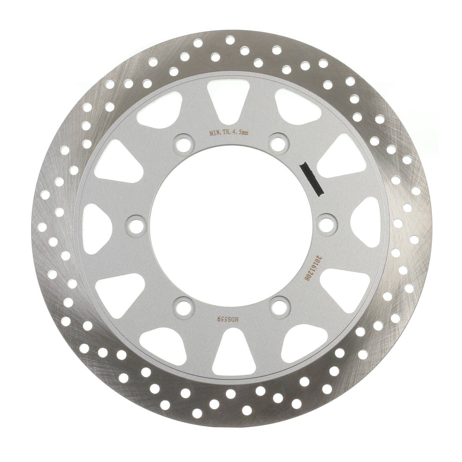 MTX solid rotors are constructed using one complete segment of Japanese SUS 420 stainless steel, then heat-treated to HRC 36+-2. Lightening and drill hole patterns are as per OEM designs to improve braking performance and reduce the temperature of the rotor.