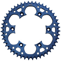 CNC machined from aviation grade 7075-T6 alloy the MTX Zero Alloy rear sprockets are your go-to option for the lightest possible sprocket solution. Constructed with self-cleaning mud grooves to increase the life of both your chain and sprocket. Computer designed weight reduction holes make the MTX Zero 66% lighter than the steel equivalent (model dependent) while maintaining maximum strength and durability. The anodised finish provides a factory look while preventing additional wear to the sprocket.