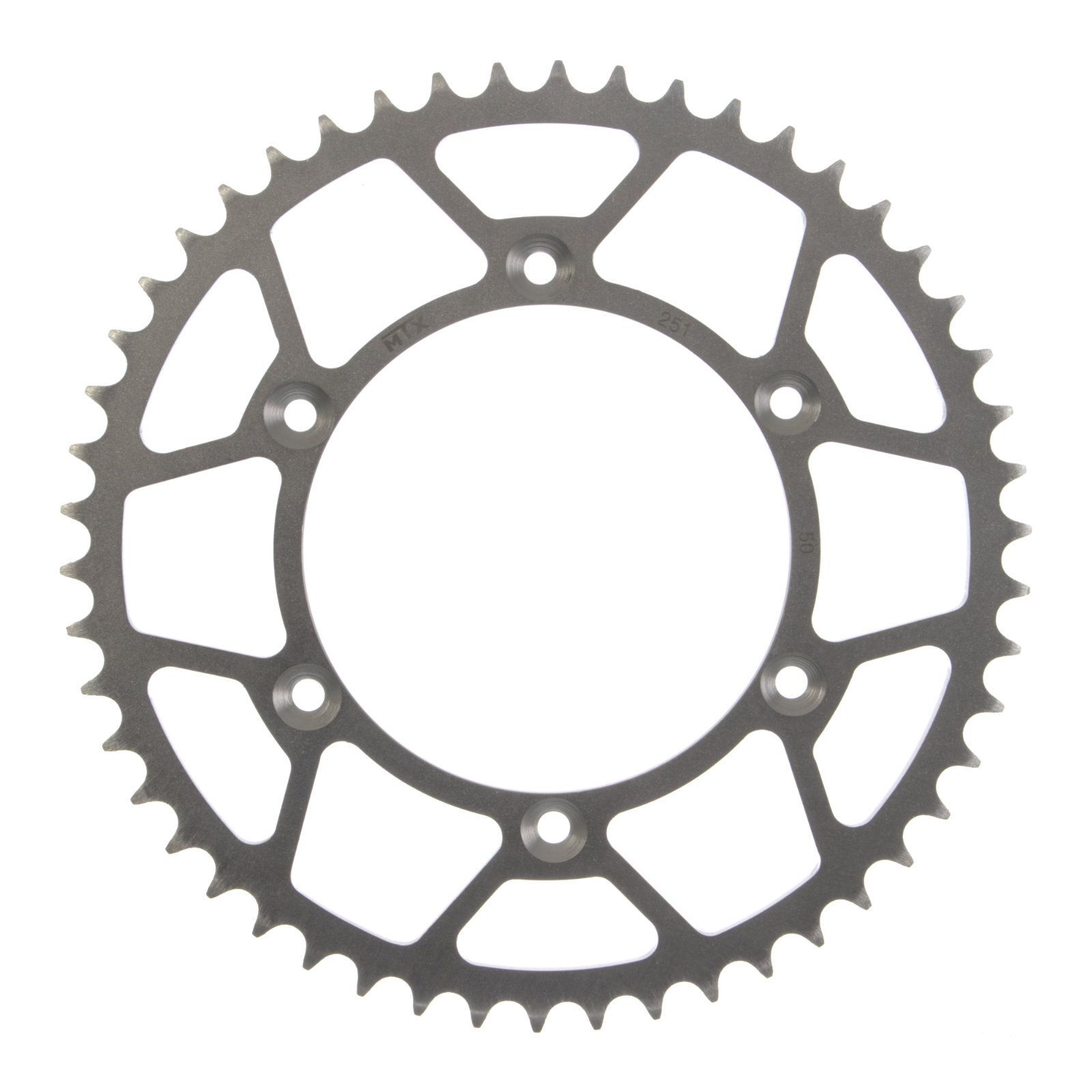 CNC machined from case-hardened Chromoly steel the MTX Hornet Lightweight Steel rear sprockets are built to last. The combination of the fully-heat treated steel, and computer designed weight reduction holes the MTX Hornet will last longer than any alloy sprocket and weigh less than solid OEM steel sprockets. Self-cleaning holes increase chain and sprocket life while a nickel finish provides corrosion and wear resistance.
