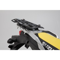 The Adventure set Luggage contains the PRO side carriers that match the Suzuki V-Strom 1000 and the matching ADVENTURE RACK. The side carriers and rack are attached to the bike-specific attachment points and offer a secure hold for the silver TRAX ADV aluminum cases.