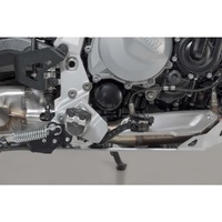 SW-MOTECH manufactures these extensions from high-strength milled aluminum alloy; they feature a black anodized surface and a stainless steel step plate. For optimal ergonomic adjustment, the increase in the brake pedal step can be adjusted in two stages of 22 or 27 millimeters.