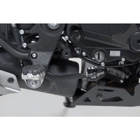 SW-MOTECH manufactures these extensions from high-strength milled aluminum alloy; they feature a black anodized surface and a stainless steel step plate. For optimal ergonomic adjustment, the increase in the brake pedal step can be adjusted in two stages of 22 or 27 millimeters.