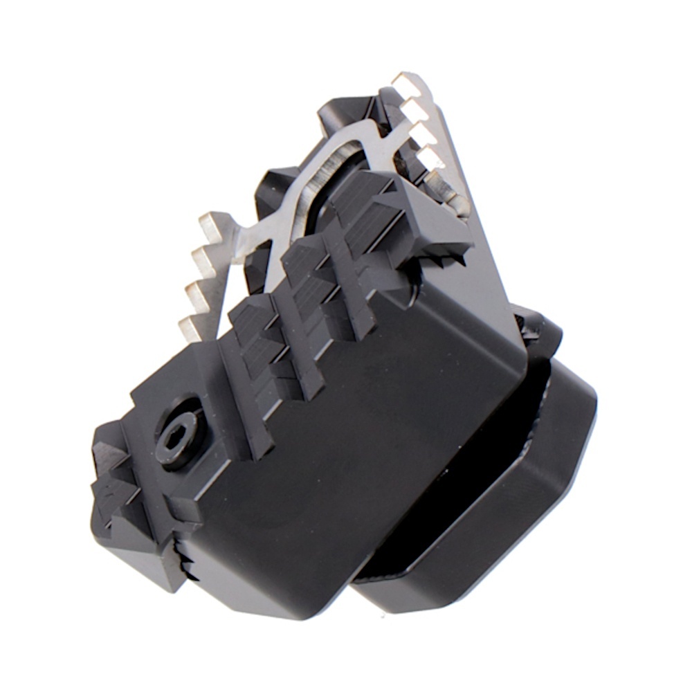 The extension for brake pedal is ideal for off-roading: it enhances the original brake arm tread and guarantees a safe, controlled use of the brake. The extension makes it possible for the contact surface to be both broader and higher. That means the extension for brake pedal offers better safety and better control over the rear brake.