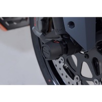 The front axle crash pads made of abrasion-resistant plastic protect the drive shaft from damage in the event of a fall. The smooth surface also provides excellent sliding properties. The polished bull logo in red adds a visual highlight to your motorcycle.