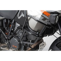 These upper crash bars are constructed from black, powder coated steel and are fitted as a supplement to the original KTM crash bar.