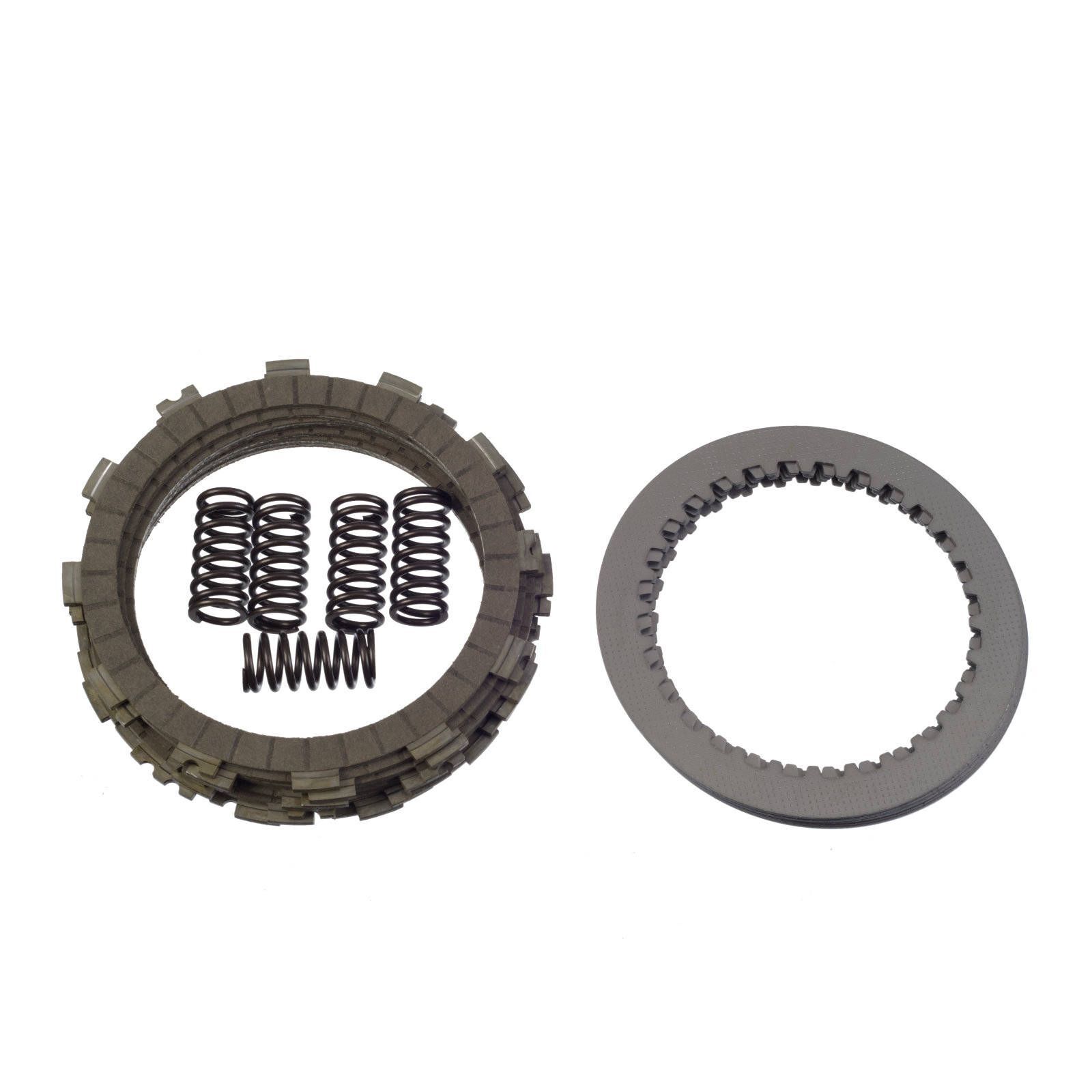 Whites Complete Clutch Kits contain a complete pack of friction steel plates and a set of clutch springs for your motorcycle or ATV. The Whites Complete Clutch Kit is the easiest and best replacement for your clutch. The kit has complete compatibility with your OEM clutch components. Quality drive and friction plates are made with precision to ensure tight tolerances in the clutch basket and inner hub. Quality cork-based friction plates offer a great feel and strong engagement.