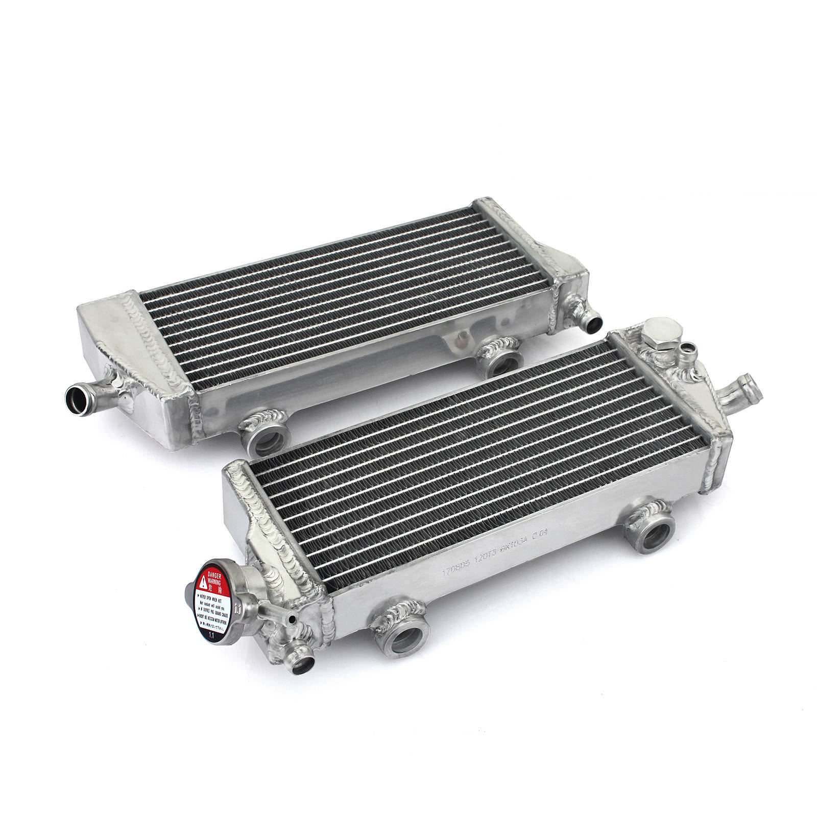 Whites aluminium radiators make great replacements toyour bent cracked and damaged radiators. Whites radiators offerexceptional cooling and maximum efficiency to ensure your machine's topperformance. Based on the OEM specs a hand-welded aluminium design offersboth a great fit and styling. All cap side radiators will include a newradiator cap.