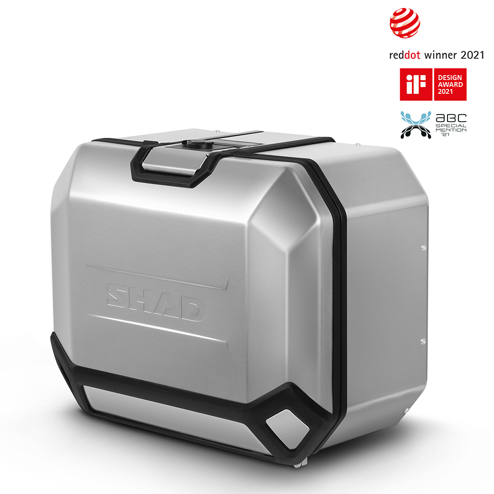 The TR47L side case is designed, engineered and made 100% in Barcelona with capacity for one helmet (Trail) or 2 helmets (Flip-up and jet). Made from hardened aluminium alloy, a stronger and lighter type of aluminium which allows a reduced cross section of 1.2mm to obtain a minimum weight with maximum resistance. The TERRA BLACK EDITION is finished with scratch resistant powder coated paint. AISI 304 stainless steel hinges and pegs so you can set the case on the ground without it rolling over, and ABS case guards to protect from impacts.